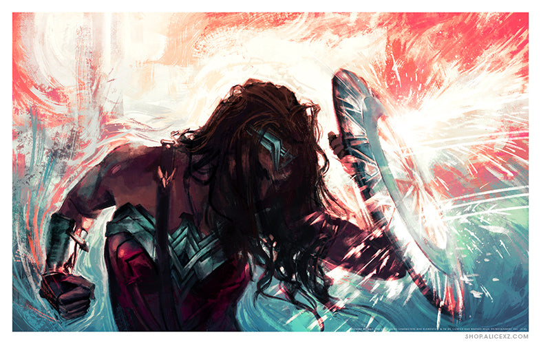 Artwork by Alice X. Zhang, inspired by Wonder Woman, licensed by DC (Warner Bros.), originally released through Bottleneck Gallery